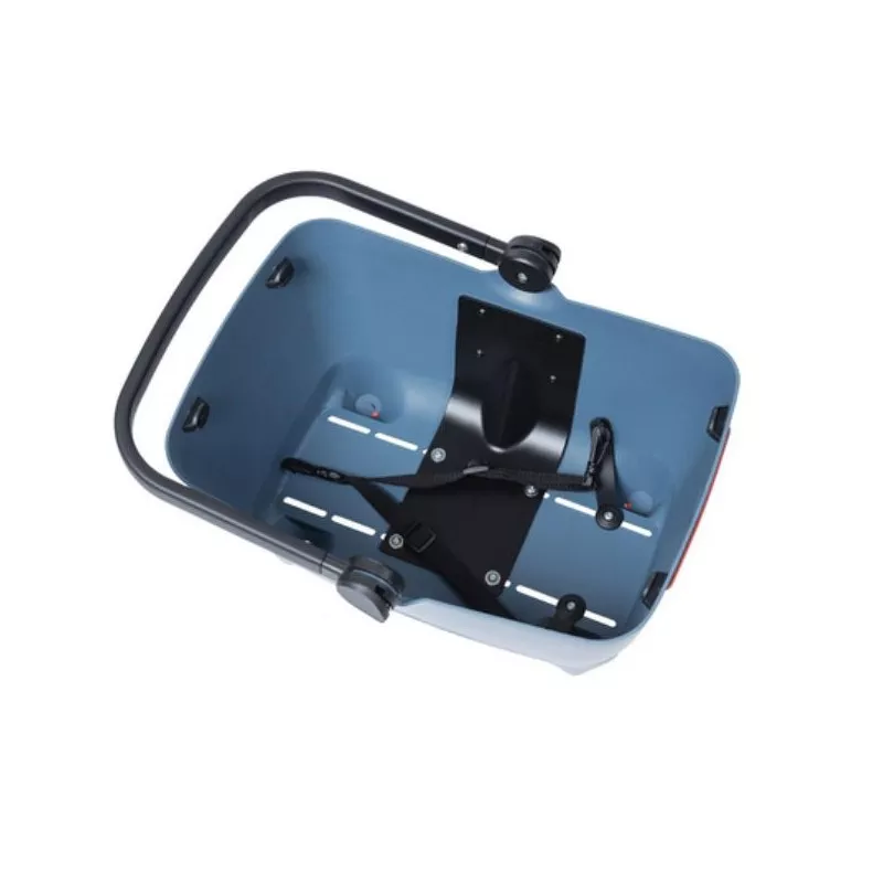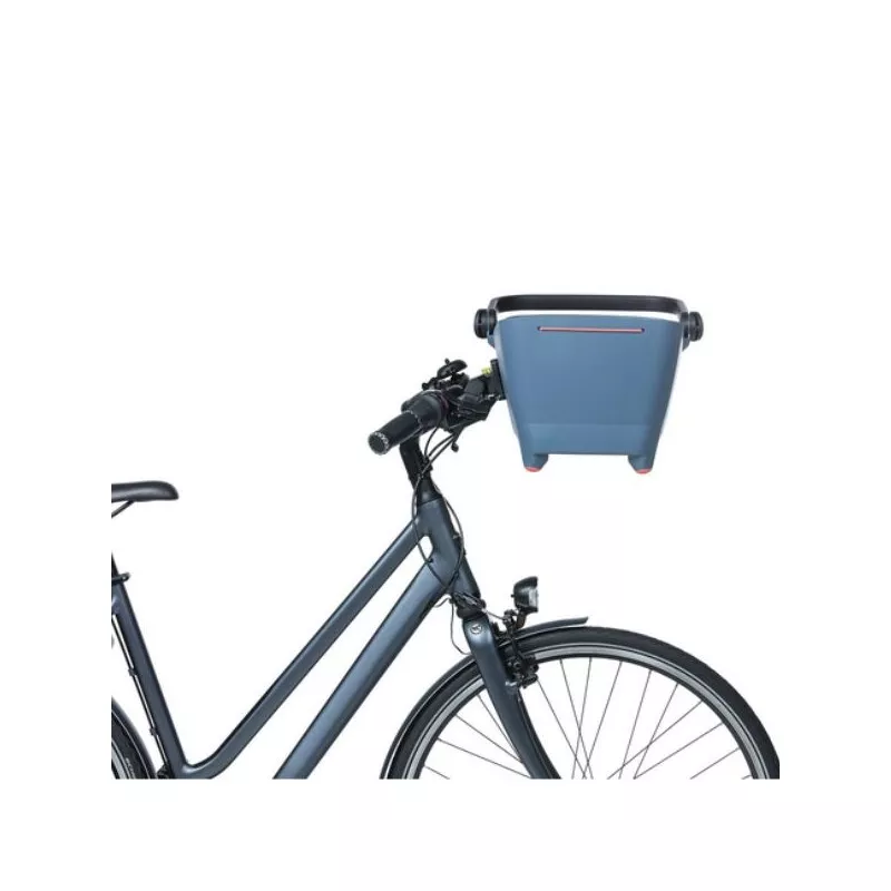 Panier bleu arrière pour chien Buddy de la marque Basil au design moderne. Livré avec le système MIK pour attacher ce panier à tous les porte-bagages.
