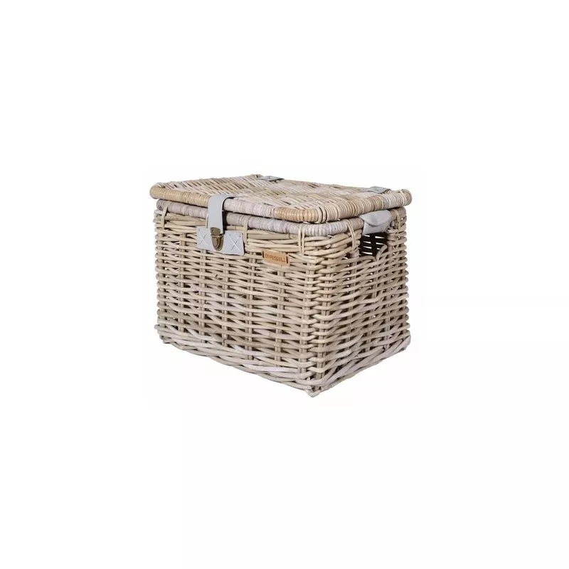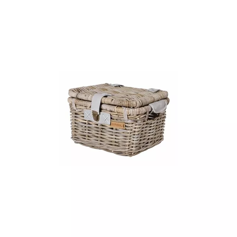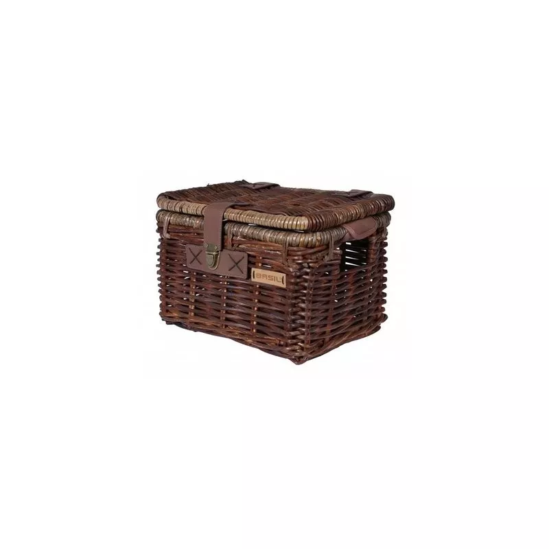 Donnez du style à votre vélo avec ce panier pour vélo en osier équipé de détails en cuir synthétique. Existe en trois tailles et plusieurs coloris.