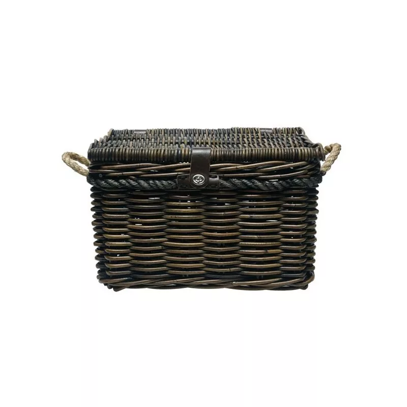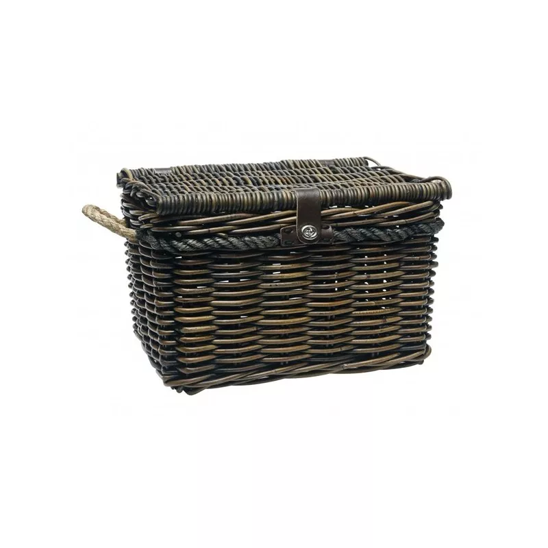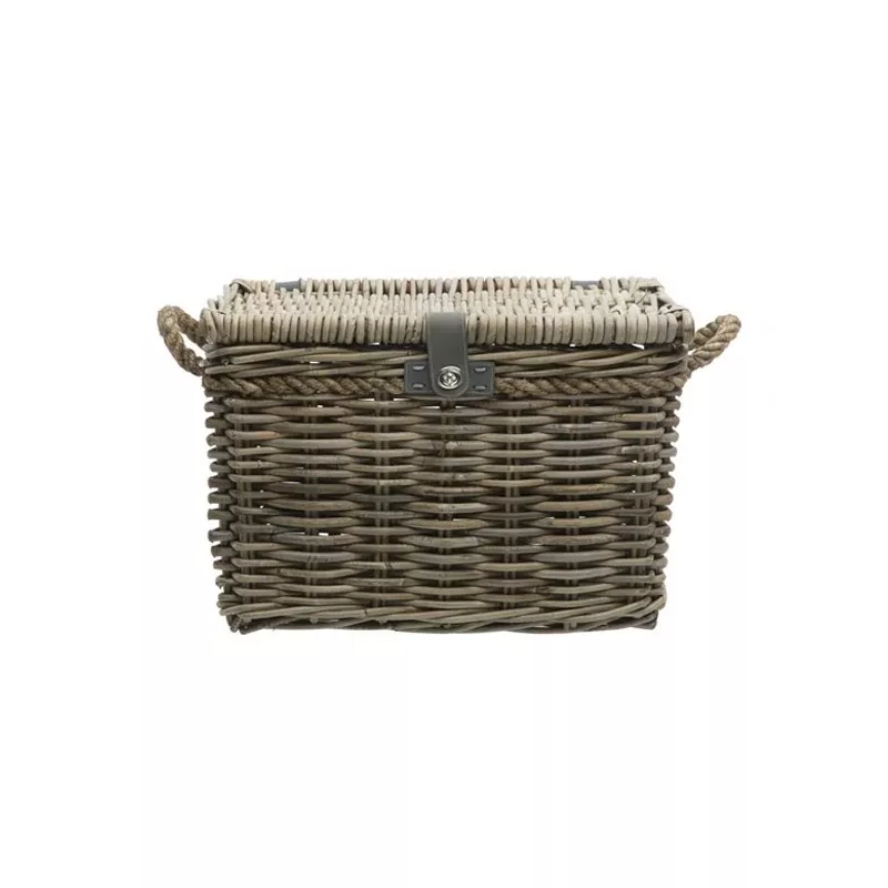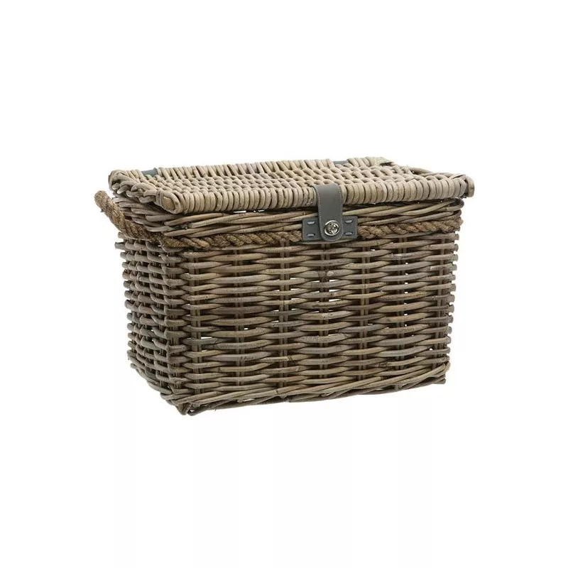 Ce joli panier vélo en rotin de la marque New Looxs s'installe sur le porte-bagages avant du vélo. Contenance 45 L