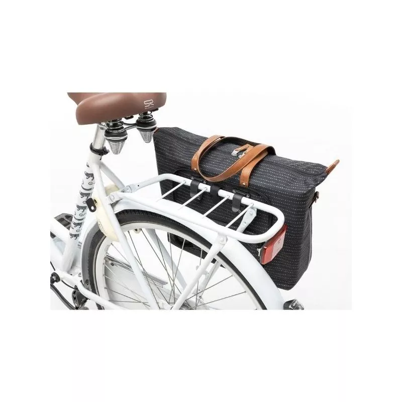 Sacoche de vélo pratique qui peut se porter à la main, en bandoulière ou se fixer sur le porte-bagages arrière de votre vélo. Contenance 21L. Idéal pour les déplacements urbains.